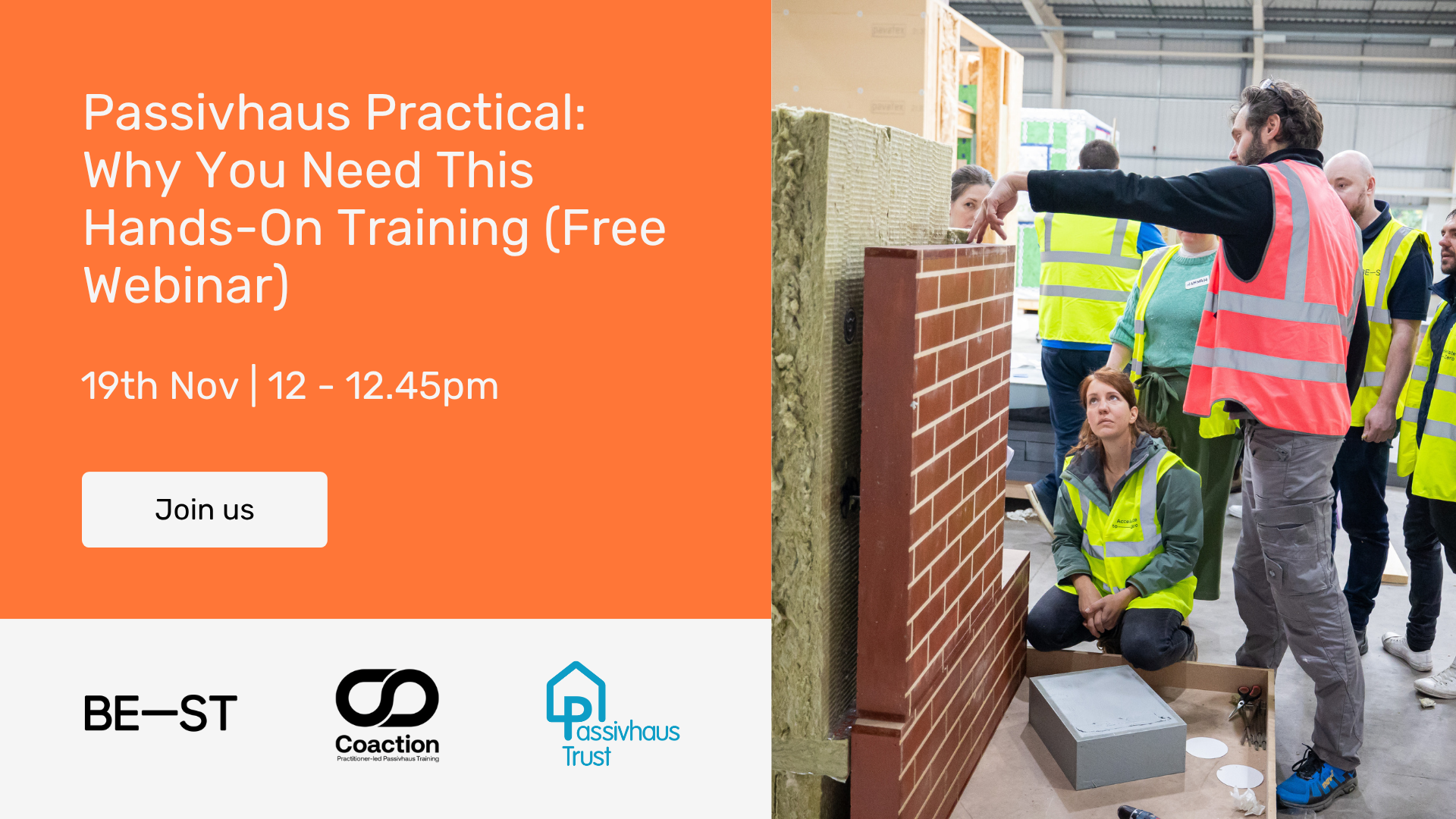 Held at BE-ST’s A Lab in Hamilton, near Glasgow, this course is delivered in partnership with Coaction Training CIC and BE-ST, two organisations committed to accelerating the transition to low-carbon construction in the UK.